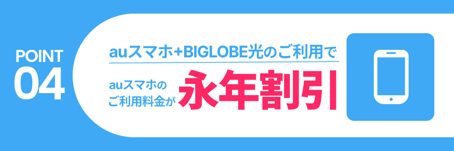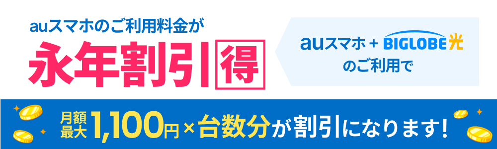 ※KDDIが提供するサービスです。割引適用には「auスマートバリュー」と「BIGLOBE光電話」のお申し込みが必要です。