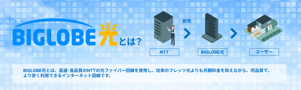 BIGLOBE光は高速1Gbpsのインターネットが使い放題!フレッツ光の回線を使用しているので、高品質なインターネットを利用することが可能です!さらにいままでお使いのインターネットからBIGLOBE光に契約変更することで、ぐっと月額利用料を抑えることが可能です!
